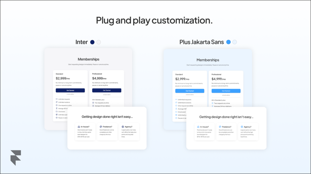 💡 Effortlessly Customizable: Choose your brand's fonts and colors in the 'assets' section, and they will automatically apply to the entire site. Adjusting content is hassle-free with Framer's component system.
